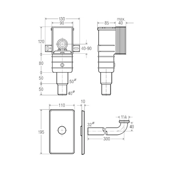 • Verbindingen: 5/4" fitting, aansluitbaar op Ø 40/50 mm afvoer