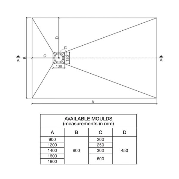 Afmetingen: 1400 × 900 × 30 mm – ruim oppervlak met lage instap
