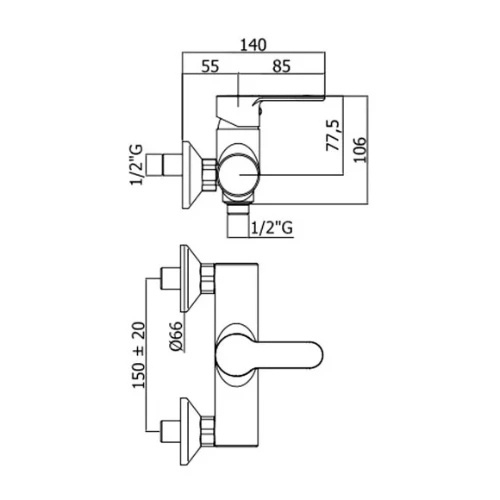 Een moderne douchemengkraan die eenvoud, gebruiksgemak en kwaliteit combineert. Met zijn strakke lijnen en glanzende chromen afwerking past deze kraan perfect in een eigentijdse badkamer.