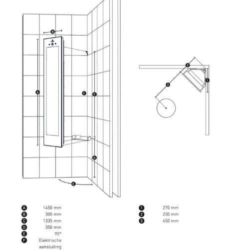 De Combi White is ontworpen voor hoekopstelling en neemt daardoor minimale ruimte in beslag. Met zijn witte afwerking en slanke verticale vorm past hij moeiteloos in moderne badkamers. Het robuuste design van 145 cm hoog biedt voldoende capaciteit om het hele lichaam gelijkmatig te behandelen.