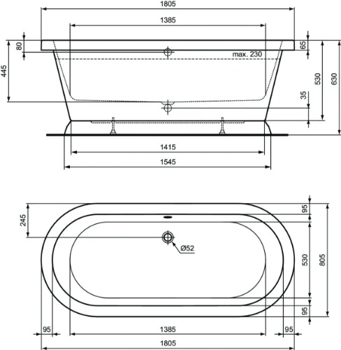 Het Ideal Standard Calla duovrijstaand bad brengt klassieke elegantie samen met modern comfort. Met royale afmetingen van 1800 × 800 mm en de glanzend witte afwerking vormt dit bad het stijlvolle middelpunt van de badkamer. De subtiele, klassieke vormentaal van de Calla-serie geeft iedere ruimte een vleugje luxe en tijdloze allure.