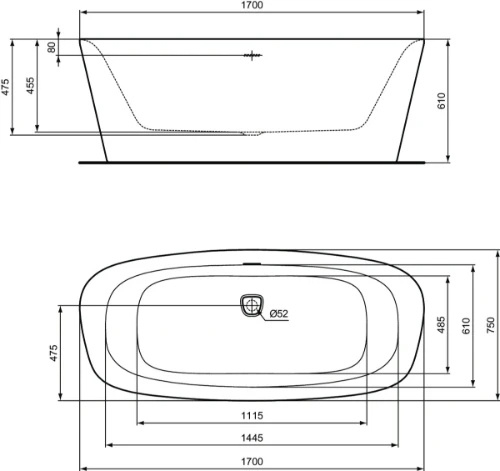 Afmetingen 1700 × 750 mm, geschikt voor een duo-badervaring